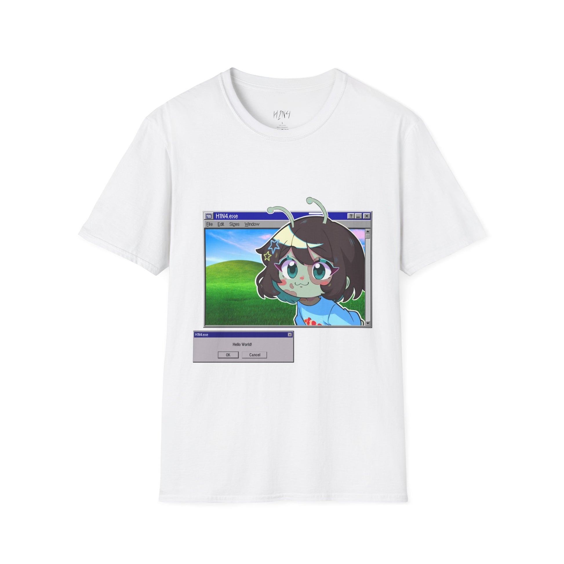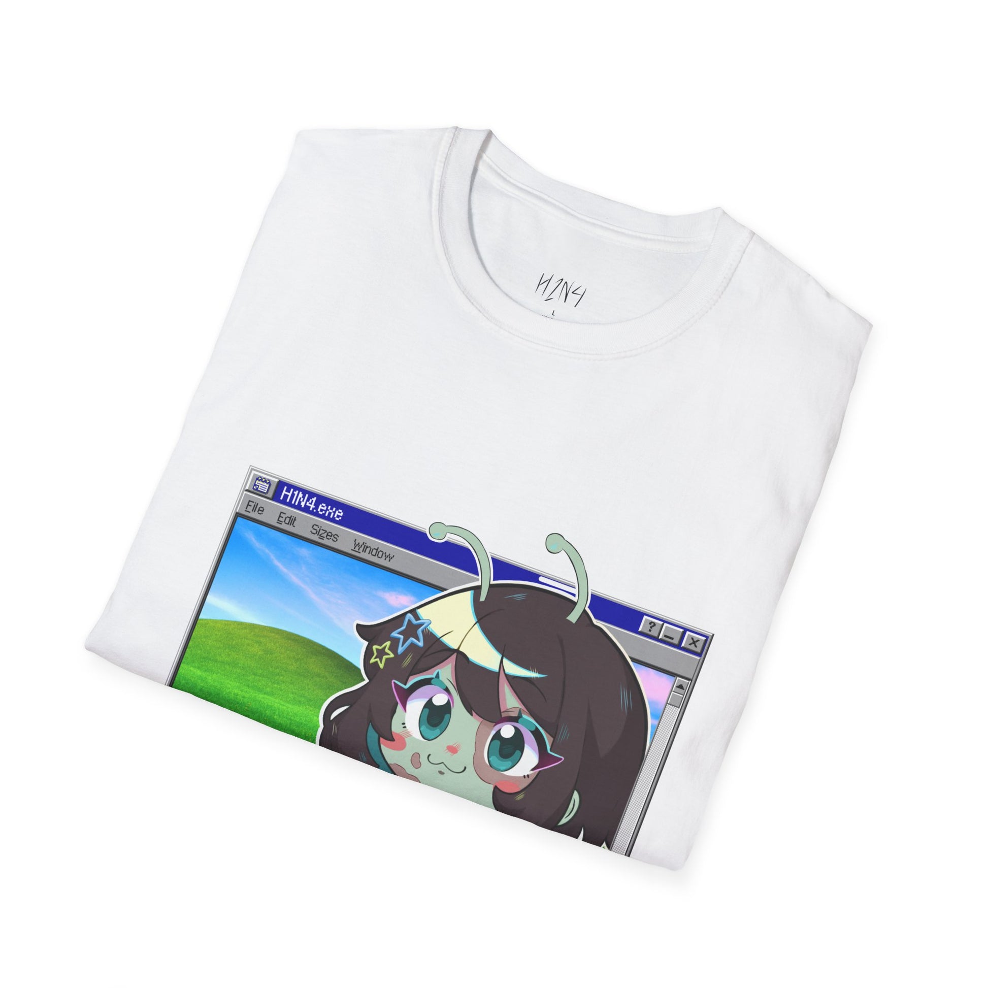 A soft, everyday tee that wears like a memory of late‑night art sessions and desktop nostalgia. The shirt shows a wistful, anime‑style character framed inside a retro Windows window — soft greens, sky blue, and warm skin tones that pop against the clean white fabric. Lightweight and breathable, it sits casually at the shoulders and drapes naturally, so the artwork reads like a snapshot pinned to your chest. It settles into your rotation for walks, video chats, gallery crawls, or when you just want something that speaks your aesthetic without shouting. The design feels both playful and a little melancholy — a wearable piece of internet daydreaming for people who collect soft, expressive things and like their style to hint at storytelling.